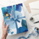 Akvarell botaniskt omslagspapper med blå mystisk orkidé, flora och ömtåliga blommor. Perfekt för vår-, sommar- eller vinterpresenter till flickor, boho-älskare eller vackra natur-teman tillfällen.