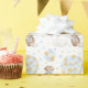Med söt nalle + vattenfärgad luftballong mönster i blått och guld