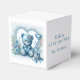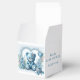 Konstruktion för spädbarnsdusch med en blå nalle med blommor och snöre. Du kan anpassa förmånslådor för babyduschar med informationen från party.