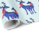 Förpackning papper med ljusgrön blå bakgrund. Illustrerad med ett par blå skandinaviska hjortar med röda halsdukar. Med dekorativa markeringar på kropparna. En upprepande utformning av mönster.