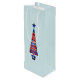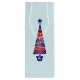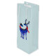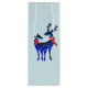 En vin-presentpåse med ljusblå bakgrund. Illustrerad med ett par blå skandinaviska hjortar med röda halsdukar. Med dekorativa markeringar på kropparna. Baksidan har en nordisk Julgran i stil i blått och rött med en stjärna överst.