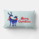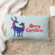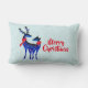 En lumbalkudde med texten: God jul. Text kan enkelt redigeras för att säga vad du vill. Designad med ljust grönt och vit snöbakgrund tittar. Illustrerad med ett par blå skandinaviska hjortar med röda halsdukar. Med dekorativa markeringar på kropparna.
