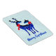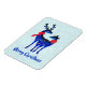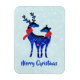 En flexmagnet med en ljust grönt och vit snöbakgrund tittar. Illustrerad med ett par blå skandinaviska hjortar med röda halsdukar. Med dekorativa markeringar på kropparna.