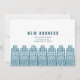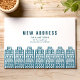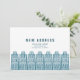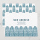 Blå ny adress med retro tecknade byggnader inbjudningar