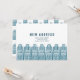 Retro stadsstil med tecknade stadsbyggnader i blått för en mycket exklusiv ny adress tillkännagivande.