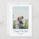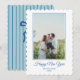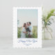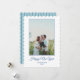 Blå Nyårs Förberedd Båge Rand Familjefoto Julkort. Anpassa med ditt namn, foto och hälsning.