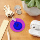 Retro Space Hopper-nyckelring på en lila bakgrund.