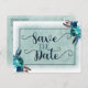 Blå och akvatiska vattenfärger Bröllop spara datum Meddelande Vykort