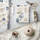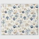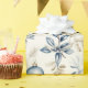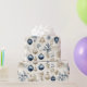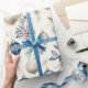 Julprydnadsföremål i vackra blå och ljusbeige nyanser är märkta med blommor av typen blått och guld.