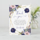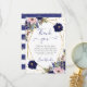 Elegant Boho Watercolor Blue och Cream Sommarblommor och bladverk med guld geometrisk ram