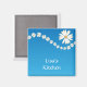Den här söt magneten har en blå bakgrund. En rad med små daisy finns överst med en stor daisy i hörnet av den övre högerna. Det finns ett utrymme på grund för ett eget namn eller ett eget meddelande.