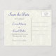 ****OBS: Bandet och juvelerna är tryckta bilder och är inte verkliga. Detta kungliga blå och elfenbensfärgad damast spara datum postkort matchar de föremål som visas nedan.