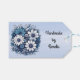 Blå och grå bukett på blå bakgrund presentetikett