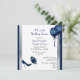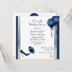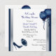 Inbjudan till Roligt par möhippa görs i en marin blå och vit kvadratisk form. Bilder med en blå och silver kant på lämnat och höger sidor, med ett vitt textområde. Bilder av en mörk blått stiletto för att klämma en marin blå, grått och vit fotboll dekorerar den grund som lämnas framför inbjudan och blå ballonger dekorerar den översta högerna. Baksidan har en blå, blå fotboll och mörk blått ballonger. Vit text på skon och fotboll har bruden och brudgummens namn. Text i svart, vitt och blått är redot att anpassa efter din stora händelse. En trevlig inbjudan kommer paret att hålla.