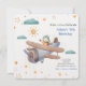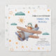 Blå och grön akvarell flygplanspilot baby inbjudningar
