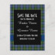 Blå och grön tartanrutig spara datum meddelande vykort