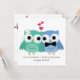 Blå och Grönt | Cute Uggla Bride och Groom Bröllop Inbjudningar