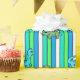 Blått och grönt, strimlad dinosaurier från födelsedagsgåva.