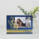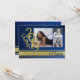 Blå och gul 2019 universitets- eller högskoleexamen randig inbjudan. Tre bilder kan läggas till denna festliga inbjudan eller tillkännagivande för examenstekniker från 2019 i blått. Anpassa texten på baksidan för att passa dina behov.