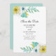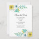 Blå och gula blommor. Spara datum för Mint-blommig Inbjudningar