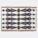Den här täckfilten har en konsthantverk av trianglar och diamanter som ser ut som skålar i blått och guld.
