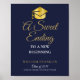 En elegant examensfestskylt med personlig touch i chic typografi på en marinblå bakgrund. Designad av Thisisnotme