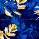 Tropiska väv löv mönster i blå och guld.