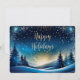 Blå och guld glada högtider 5x7 pärlskimmer julkort