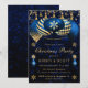 Blå och Guld Glittrande Julgranskulor Julfest Inbjudningar