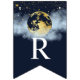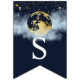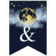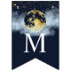 Navy Blue & Guld Måne och Stars Baby Shower Bunting Flaggor.