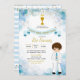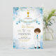Blå och guld pojke första kommunion Inbjudan