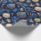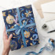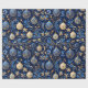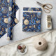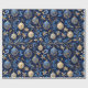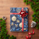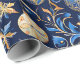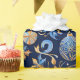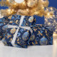 Söt Blue- och guld-julklapp med abstrakt mönster av prydnadsföremål, fjädrar och löv av abstrakt.