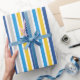 Om du kärlek rand, än du, kärlekar detta färgstarka emballage pappert. Om du visar ett blått, vitt och guld-lodrät som har förstörts mönster är detta underbart för helgdagar, födelsedagsfester, babyduschar och så mycket mer. Beställ din strimlade papper i dag! Bild skapat av: AMBillustrations http://www.etsy.com/shop/AMBillustrations/