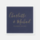 Med namn i guld signaturstil kan dessa eleganta marinblå servetter anpassas med din vigselinformation i chic bokstavsstil. Designad av Thisisnotme©