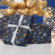 Blå och Guld Snöflingans röda dekorationer Presentpapper