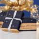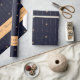 Omslagning papper med en mörk blått bakgrund och tapet-bakgrund med guld, med ett skript för elegant och ett seriöst teckensnitt där din personlig är skriven. Checka ut vår butik om du vill ha fler objekt från den här samlingen.