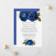 Vintage blå och gul blomsterbrölloppsgästlista annonskort. I dessa osäkra tider kan det hända att du måste hålla ett mindre bröllop än vad som ursprungligen planerats. Detta annonskort tar bort pinsamheten och tar en tyngd av dinnet! Du kan dessutom ge ett alternativ att delta i en virtuell ceremoni.