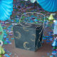 Grungig vintage fantasimån favör låda i accenter av falskt guld och blått.