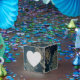Blå och guld vintage sagolik damaskmönster presentaskar