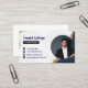 Blått och guld, modern utformning av affärskort, elegant och professionell med fält som mall för namn, titel, foto och kontaktinformation.