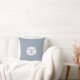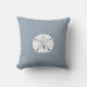 Beach dekorative dekorativ kudde i en marin blå och vit sanddollardesign. Pillow-design är en faux weave mönster i marinblått med en marin blå och vit sanddollardesign i mitten. Baksidan av kudden är utformningen av faux weave mönster i koordinerande marinblått.
