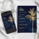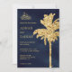 Blå och guldglittrande dadelpalms muslimska bröllo inbjudningar