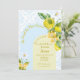 Hon hittade sin huvudsakliga klämning, vackra baby blue och gult inbjudningskort för möhippan