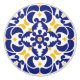 En traditionell Medelhavsbricka i hand plockade mönster. Mosaikblå och gult blommigtens geometriska platta. Perfektens dekorativa utformning, idealisk gåva till alla tillfälle. Inspiverad av portugisiska plattor, italienska, spanska och medelhavsinflytande.