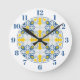 Blå och gult söt - portugisiska plattor mönster rund klocka