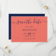 Personlig marinblått kort och korallkort bröllop spara datum med ett modernt skript. Anpassa enkelt onlinen. Matchande objekt är tillgängliga.