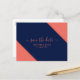 Meddela din marinblå och koralliska bröllopsfest till din familj och dina vänner med dessa minimalister, men ändå sparar elegant bröllop datumkortet. Anpassa enkelt onlinen. Matchande artiklar som är tillgängliga för att komplettera detta moderna vykort för bröllop spara datum.