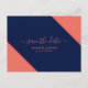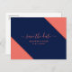 Blå och korall Bröllop spara datum Meddelande Vykort