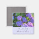 Vacker blått och lila vattenområden med mörk grönt bladaccent i eleganten spara datum magneter. Gräns färg är en mjuk blå nyans. Anpassa efter behov.