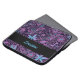 Blå och lila nyblommor på svart bakgrund, lägg till ditt namn.